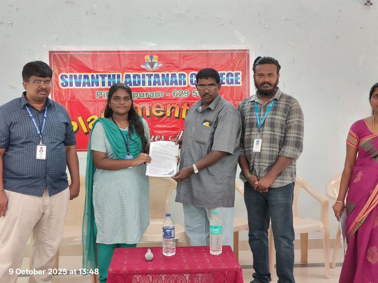 The following students from our college have been selected in campus placement drive conducted by Besant Technologies on 09.10.2025. List of Selected Students: